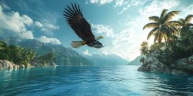 Majestic Eagle Soaring Over Tropical Paradise A Breathtaking Vis