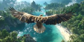 Majestic Eagle Soaring Over Tropical Paradise Breathtaking Aeria