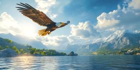 eagle bird wildlife nature landscape mountains sky clouds water lake sea ocean sunlight sun flight powerful majestic freedom bird of prey raptor wings feathers rock cliff tree forest tropical scenic view panorama photography photo artwork digital art illustration background environment wildlife photography animal avian apex predator ecosystemSimilar Photos