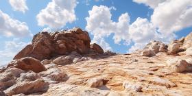 rocky landscape desert landscape rock formations sunlit scene blue sky white clouds cumulus clouds sandy terrain arid environment natural beauty geology outdoor scene travel photography nature photography landscape photography scenic view rock texture color contrast bright sunlight hillside mountain range earth tones beige rocks reddish-brown rocks open space wide view daytime bright sky unpolluted landscape natural colors stone texture untouched nature scenic background vast landscape horizon rock formations desert hills mountains nature outdoors travel landscape geology environmentSimilar Photos