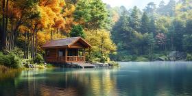 Autumn Lakeside Cabin Peaceful Fall Scene