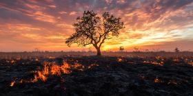 Epic Sunset Landscape Tree Silhouette over City Lights Amazing N
