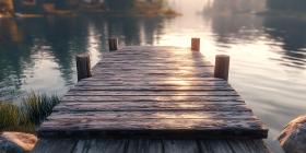 Misty Morning Serene Wooden Dock on Calm River Peaceful Nature