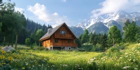 cabin mountain alpine landscape nature scenery photography travel vacation getaway scenic view beautiful serene tranquil peaceful forest trees meadow flowers grass sky blue clouds mountains snow peaks wood wooden house home cottage retreat escape idyllic rural outdoor environment eco green summer sunshine holiday relaxationSimilar Photos