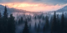 mountain forest sunrise fog mist evergreen trees dawn nature landscape scenic view panorama peaceful serene magical atmosphere dramatic photography woods coniferous pine fir spruce clouds sky sunset twilight light shadow color texture mountain range aerial view drone photography scenic view natural beauty outdoor environment vista hillside mountain peak calm tranquilSimilar Photos