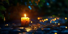 Single Lit Candle in Dark Setting Peaceful and Serene Atmosphere