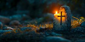 cross candle grave night dark scene memorial reflection peace serene calm spiritual religious faith belief hope loss remembrance gothic mystery darkness light contrast texture mood atmosphere evocative poignant stillness quiet solitude contemplation meditation photography landscape nature rocks moss ground ambient glow shadow silhouetteSimilar Photos