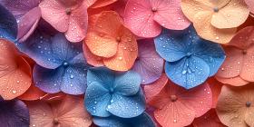 hydrangea flowers petals pastel colors pink coral blue purple texture water droplets close-up macro botanical floral nature photography background wallpaper design art beauty vibrant luminous soft delicate gradient colorful bloom blossom spring summer garden floral design plant nature pretty elegant gorgeous stunning rainbow color palette detailedSimilar Photos
