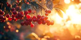 Vibrant Autumn Berries Sunset Backlit Red Clusters on Branch