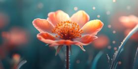 Stunning DewKissed Flower Vibrant Peach Blossom in Soft Focus