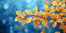 Autumn Branch Golden Leaves against a Blue Bokeh Background Sea