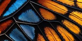 Vibrant Stained Glass CloseUp Texture of Blue Orange and Brown H