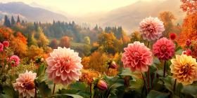 Autumnal Dahlia Delight Breathtaking Mountain Meadow Panorama
