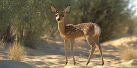 Young Mule Deer in Olive Grove Habitat A Wildlife Scene