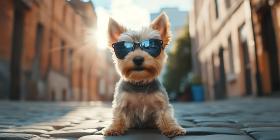 Cool Dog in City Yorkshire Terrier Wearing Sunglasses
