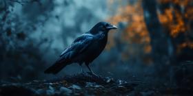 raven crow bird wildlife avian nature forest woods dark mystery enigmatic wildlife photography bird photography animal photography nature photography black bird corvid gothic dark photography atmospheric moody dramatic outdoors trees leaves autumn fall closeup macro details texture silhouette shadow birdwatching ornithology black blue orange background scene environment wildSimilar Photos