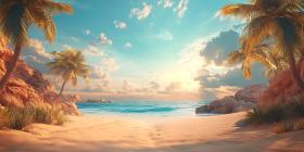 Tropical Beach Sunset Idyllic Paradise Scene for Artistic Projec
