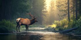 elk wapiti deer wildlife nature animal forest woods trees river water landscape scenic photography photo nature photography wildlife photography animal photography golden hour sunlight light peaceful tranquil serene calm quiet beautiful majestic elegant wild wilderness outdoors environment ecosystem natural scenic view riverbank rocks antlers horn animal kingdom wildlife habitat habitatSimilar Photos
