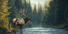 elk deer wildlife forest nature animal wild woods river water trees pine evergreen mountain landscape scenic photography park wildlife photography nature photography beautiful serene peaceful calm tranquil wild animals north america mammal antlers horn buck stag autumn golden hour sunlight morning dawn environment ecosystem wildness wilderness outdoors habitatSimilar Photos