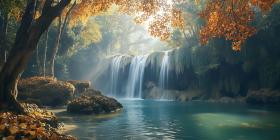 Enchanted Waterfall in Autumn Forest Serene Nature Photography