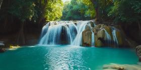 Stunning Turquoise Waterfall in Lush Tropical Paradise Nature Ph