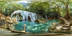 Stunning Waterfall in Lush Tropical Paradise Vibrant Emerald Poo