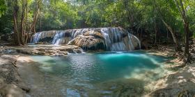 waterfall tropical rainforest turquoise water nature landscape scenic hidden oasis travel adventure paradise jungle river pool water rocks trees leaves green blue clear water serene tranquil calm peaceful escape relaxation getaway vacation photography environment ecosystem wild untouched natural beauty fresh water tropical paradise hidden gem vibrant lush greenery summer outdoor beautySimilar Photos