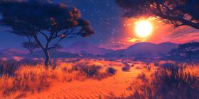 african savanna sunset digital painting landscape nature art digital art illustration africa savanna tree acacia tree horizon sun sky stars night sky vibrant colors orange red blue purple warm colors grassland arid landscape tranquil serene peaceful wilderness wildlife nature photography artistic creative digital painting artwork graphic design background texture scene panorama view sunset landscapeSimilar Photos