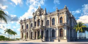 mansion caribbean architecture estate luxury building tropical design opulent stone palm trees property real estate grand house home building exterior facade windows doors columns details ornate elegant impressive sun sky clouds landscape grounds vacation resort paradise dream home luxury living exclusive prestige high-end idyllic majestic beautiful stunningSimilar Photos
