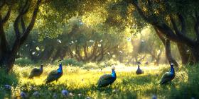 Majestic Turkeys in a Sunlit Grove A Serene Nature Scene