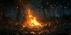 campfire forest night fire woods trees embers flame dark night sky magical ambiance warm vibrant shadowy mystery wonder tranquility adventure nature outdoors scenic landscape background texture bonfire glowing sparkling hot burning wood coal light darkness scenic view natural environment illustration artistic digital art fireplace camp wildSimilar Photos