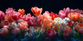 tulips hyacinths flowers bloom floral spring pink orange white nature botanical plants blossom petals garden vibrant colorful beautiful closeup macro photography dark background texture elegant romantic serene peaceful springtime floral arrangement flower power blossom display natural beauty flower bed garden flowers tulip field hyacinth field flower panorama floral art spring flowers colorful flowersSimilar Photos