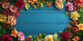 dahlia flowers floral frame border background texture teal blue vibrant colorful arrangement design element botanical nature bloom petals floral design wedding invitation greeting card website banner social media post marketing advertising branding photography image visual composition artistic creative elegant luxury beauty natural decorative colorful flowers textured backgroundSimilar Photos