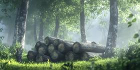 Misty Forest Lumber Pile in SunDappled Woods Nature Photography