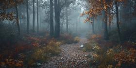 autumn forest woods path trail trees fog mist leaves fall foliage nature landscape scenic photography outdoor environment background texture scenic view autumnal seasonal woodland mystery tranquil serene peaceful calm atmosphere mood color tone golden hour fall colors autumn leaves natural beautiful vibrant dark deep magicalSimilar Photos