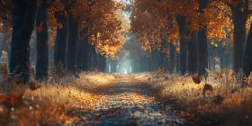 Autumnal Path Golden Canopy and Mystical Forest Lane
