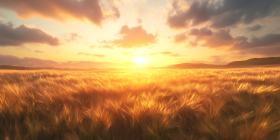 Golden Hour Sunset Over Wheat Field Landscape Photography