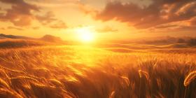Golden Hour Sunset over Wheat Field A Serene Landscape Photograp