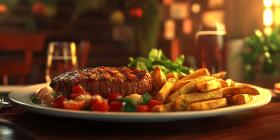 steak fries french fries restaurant food dinner meal delicious tasty appetizing cuisine gourmet plate dish meat beef vegetables herbs sauce crispy juicy brown golden dining culinary foodie food photography restaurant food delicious food dinner plate tasty meal grilled steak side dish comfort food pub food steakhouse restaurant meal food styling gastronomy culinary photography delicious dinnerSimilar Photos