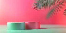 product display pastel colors pink background mint green summer background tropical background palm leaves shadow minimalism modern clean aesthetic marketing branding product photography mockup presentation display stand podium cylinders vibrant colorful background scene setting visual design composition tropical summer promotion advertising pastel neon soft lighting gradient abstract background product showcase summer vibe tropical aesthetic minimalist designSimilar Photos