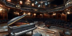 Grand Piano in a Dark Atmospheric Concert Hall A Dramatic Musica