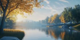 Serene Autumn River Landscape Picturesque Fall Scenery with Gold