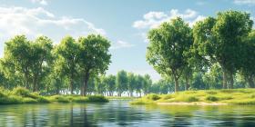 forest trees river landscape nature scenery environment digital art painting sun sky green leaves summer peaceful tranquil calm serene beautiful background vista outdoors countryside woods foliage water reflection sunshine daytime scenic view panorama artwork illustration park grove natural ecosystem habitat botanical floraSimilar Photos