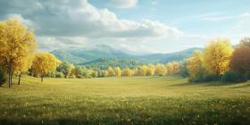 autumn meadow landscape golden trees hills nature scene background wallpaper digital art serene tranquil peaceful countryside fall foliage yellow leaves trees sky clouds field grass plants panorama view scenic beautiful environment outdoor seasonal artwork illustration artistic image photography visual graphic design composition color texture light shadowSimilar Photos
