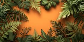fern foliage leaves green orange background texture frame border natural plant botanical floral design element aesthetic photography photo image visual graphics composition arrangement nature organic vibrant color palette autumn fall seasonal template backdrop header invitation card website social media marketing advertising illustration pattern texture rustic earth tones overhead shot flat laySimilar Photos