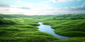 Serene River Landscape Lush Green Valley Panorama Stunning Natu