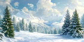 winter snow mountains trees evergreen fir pine landscape nature scene scenic view winter wonderland snowy mountains snow covered trees cold serene peaceful tranquil christmas holiday season december january february background texture wallpaper desktop illustration art digital art painting photography image picture visual graphics winter scene mountain range forest coniferous snow capped peaks blue sky clouds white greenSimilar Photos
