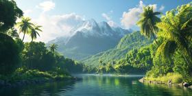 Tropical Paradise Serene River Lush Rainforest and Majestic Moun