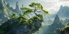 Epic Fantasy Landscape Majestic Tree on Clifftop Breathtaking Mo