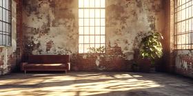 loft industrial interior rustic sunlight windows brick walls plaster sofa brown furniture plant plants room space building architecture design decor home house apartment urban city vintage retro aged worn texture background light shadow sun rays atmosphere mood style aesthetic old empty abandoned grunge interior designSimilar Photos